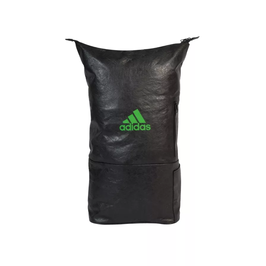 Tasken her kommer i et super fedt design. Den har et stilrent look i en sort farve med et grønt Adidas logo.