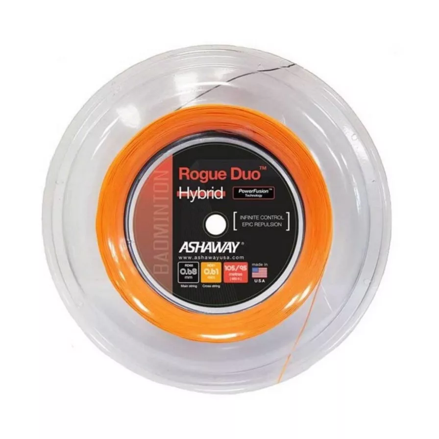 Ashaway Rogue Duo Hybrid er en super lækker kvalitets hybrid badmintonstreng i orange og sort.