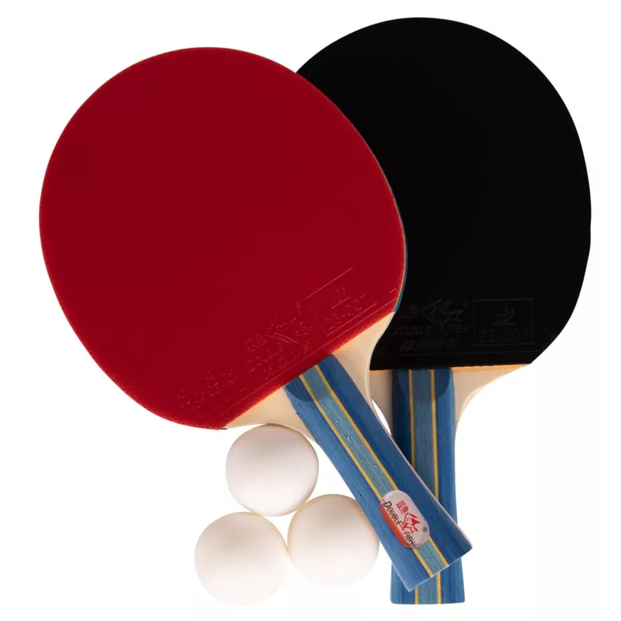 Suverænt Double Fish sæt med to bordtennisbat og tre bordtennisbolde!