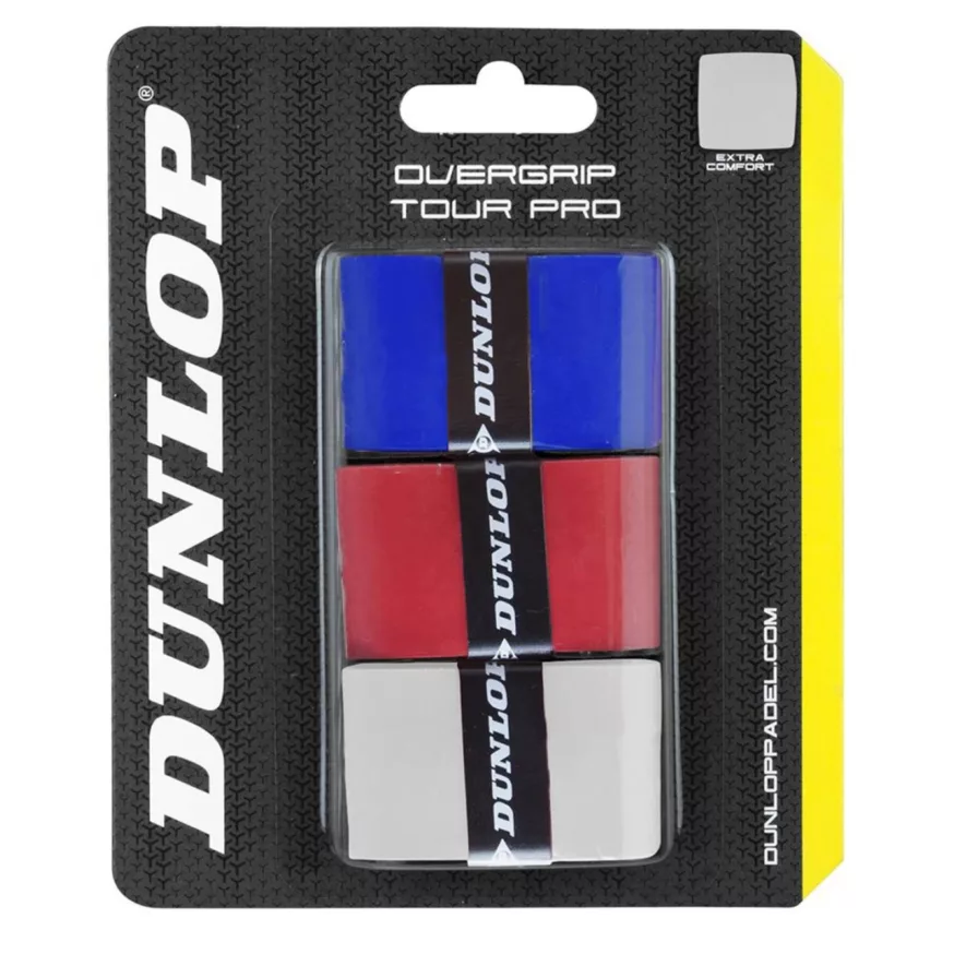 Dunlop Overgrip Tour Pro 3-pack White/Red/Blue er med til at forbedre din oplevelse på banen. Dunlop giver et mere komfortabelt greb samt forøger kontrol af bat.