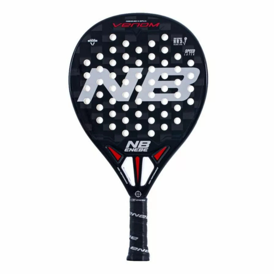 Spanske Enebe har gjort det igen! Dette Venom padel bat er perfekt til dig, der er en mere erfaren padelspiller, som har en alsidig spillestil. Dette er resultatet af kombinationen mellem dets dråbeformede hoved, mellem balancepunkt, vægt på mellem 360 og 375 gram samt de innovative teknologier og kvalitetsmaterialer.