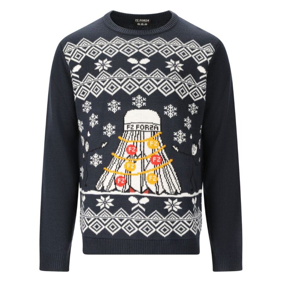 Hyggelig julesweater fra Forza med et sjovt badmintonmotiv – perfekt til december i hallen eller til julefrokosten.