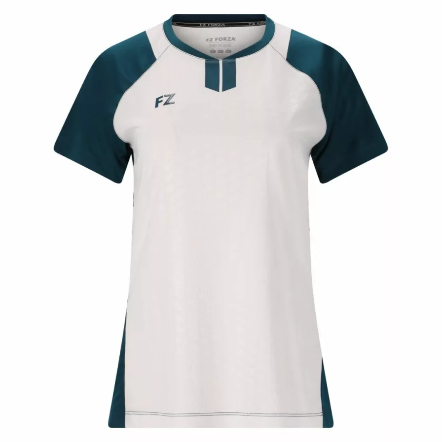 Denne dame badminton t-shirt er lavet i 100% genanvendt polyester og er behandlet med DryForze, som gør materialet hurtigtørrende, svedtransporterende og behageligt at have på. Hertil er materialet strækbart og anti-shrink for at sikre en god pasform – vask efter vask.