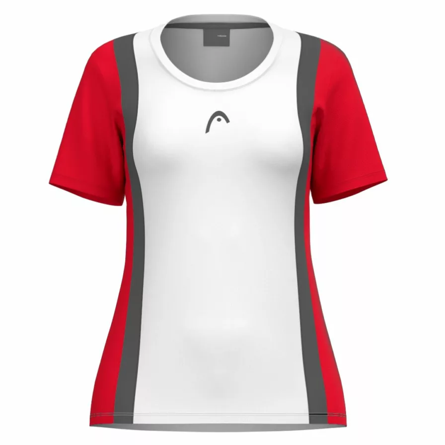 Opgrader din garderobe med denne sporty og feminine t-shirt fra HEAD! Med en klassisk pasform, rund halsudskæring og et kontrastpanel på fronten får du både stil og funktionalitet. Denne t-shirt er designet til at holde dig komfortabel, uanset om du træner eller konkurrerer på banen.