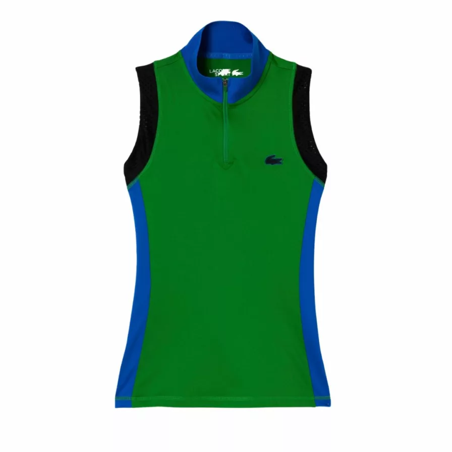 Armløs teknisk polo shirt lavet i flotte farver med pique strik. Med lufthuller under armene og i siderne, hvilket sikrer god åndbarhed. Polo shirten er slim fit og har en zip, så man både kan spille med den åben og lukket. Poloen er produceret i slidstærkt og svedabsorberende materiale.
