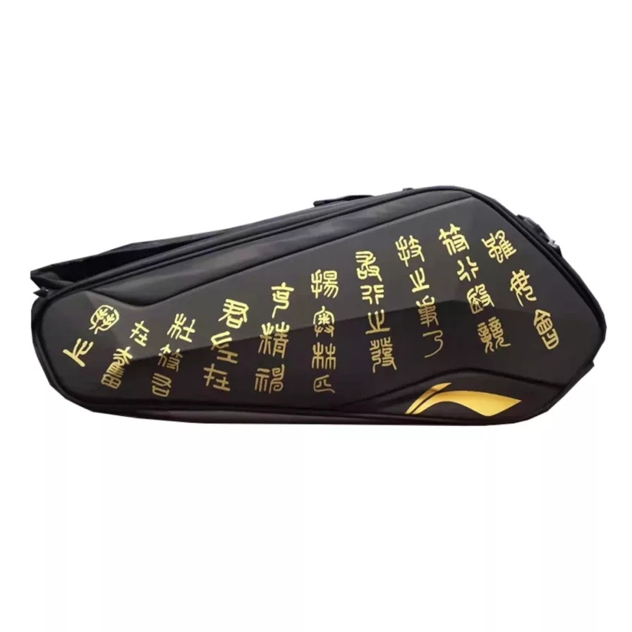 Foruden det praktiske, så har Li-Ning også lagt stor vægt på det designmæssige aspekt. Designet tager udgangspunkt i den kinesiske kultur, og derfor er denne sorte taske præget med traditionelle bogstaver i guldfarve.