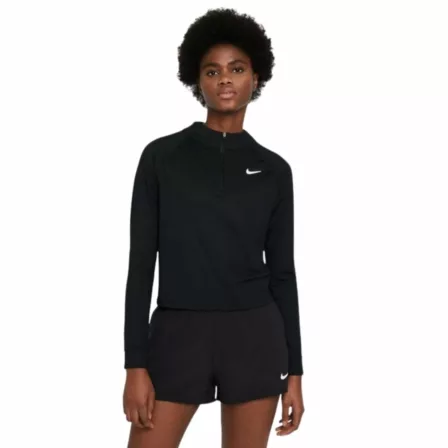 Nike præsenterer her deres populære Dri-Fit Victory i sort, som er en langærmet lynlåstrøje til kvinder. Trøjen kan med fordel bruges til opvarmning, træning eller kamp.