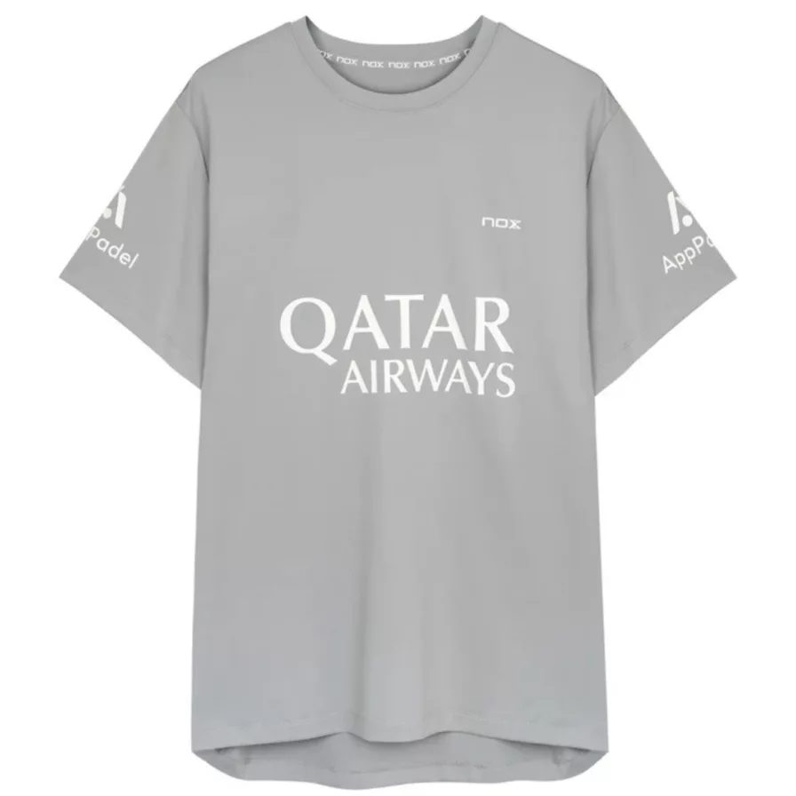 Den perfekte Nox padel t-shirt - nu med Agustin Tapia's navn og sponsorlogoer trykt på!