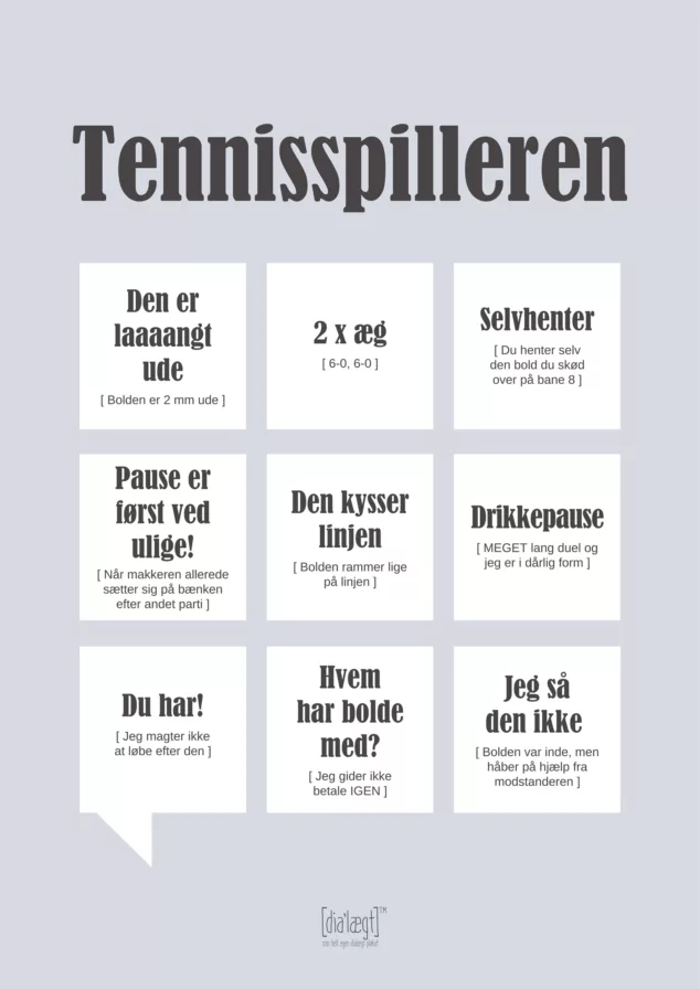 Denne sjove plakat er lavet i samarbejde med Citatplakat.dk. Vi har spurgt forskellige tennisspillere hvad de altid siger i kampens hede på tennisbanen og dette er resultatet.