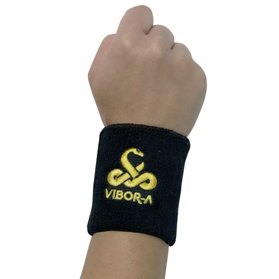 Vibor-A 12cm svedbånd i en lækker sort farve med et guld Vibor-A logo. Perfekt til den svedige padel spiller!