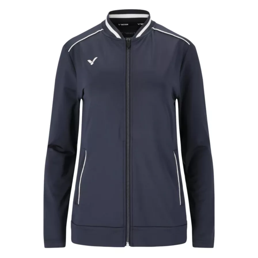 En badminton jakke til kvinder, lavet i en kombination af polyester og elastan, der giver en komfortabel fornemmelse. Badminton jakkens formål er at holde dig varme under træning eller imellem kampe. Designet er moderne, med reference til en old-school track træningsjakke.