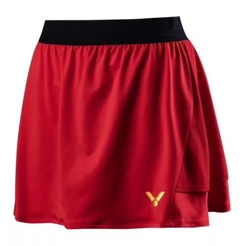 Nederdelen kommer i en farverig rød med et guld Victor logo, som fuldender det ultimative badminton look.