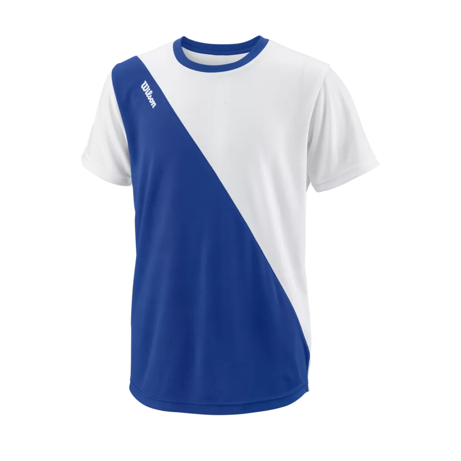 Her præsenterer Wilson deres yderst populære junior trænings- og sports t-shirt til ungdoms drengespilleren i et hvidt og blåt design! Du får en stilren junior t-shirt til sport i bløde og lækre kvalitetsmaterialer.