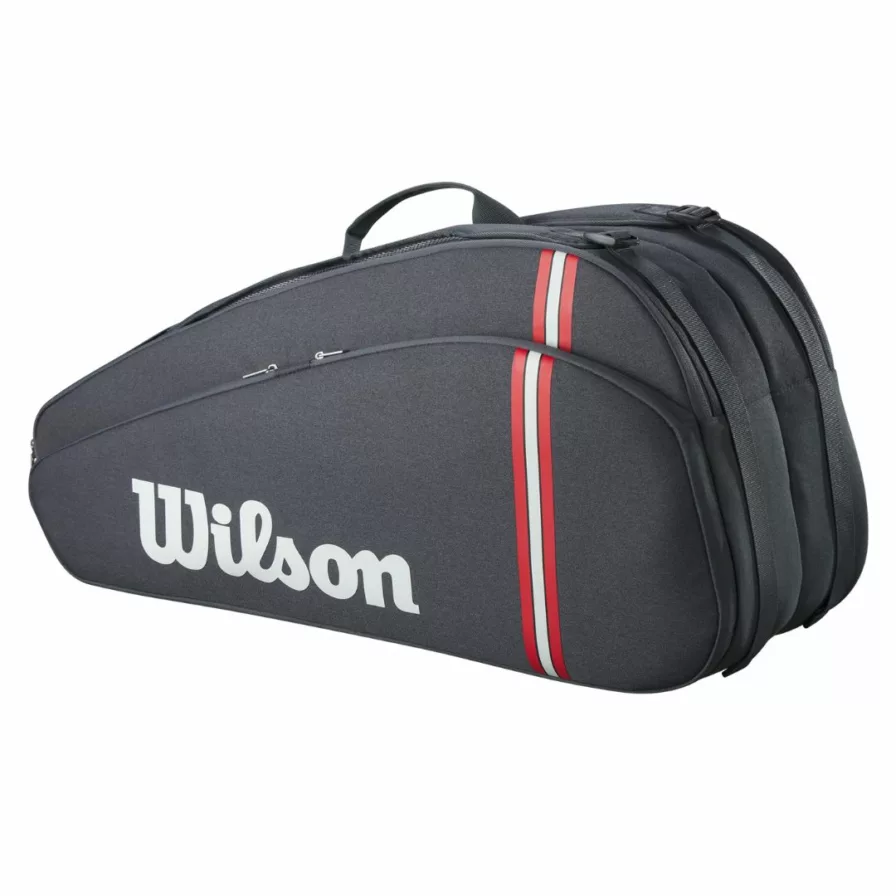 Wilson Tour 6 Pack 2025 Black er designet til både ambitiøse spillere og trænere, der har brug for at medbringe flere ketchere og alt nødvendigt udstyr. Tasken har et elegant og moderne design, inspireret af Wilsons sportswear-kollektion, og kombinerer funktionalitet med stil.