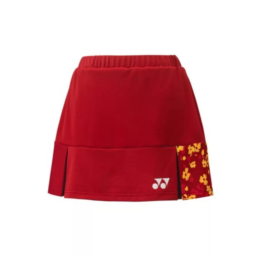 Yonex Japan Team skirt er kommet i denne super flotte røde farve med guld mønster. Nederdelen er med indbygget indershorts og med god elastisk, så du nemt kan bevæge dig rundt, uanset hvilken sportsgren du dyrker.