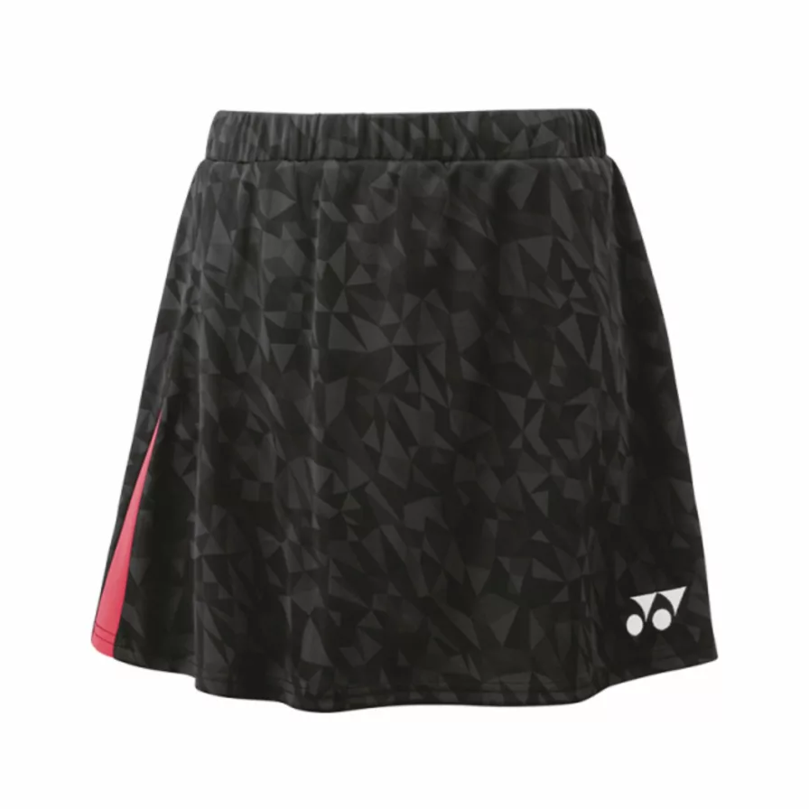 Nederdel i antistatisk cool dry materiale, som sikrer suveræn komfort. Nederdelen har en flot pasform og er også strækbar, så du får god bevægelighed på banen. Nederdelen er fra Yonex's eksklusive Japan collection 2023, og er blandt andet set på Akane Yamaguchi. Nederdelen er i et sort mønster med pink detaljer.