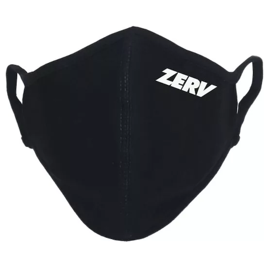 Dette mundbind fra ZERV er et 3-lags stofmundbind til voksne i farven sort og med et hvidt ZERV logo.