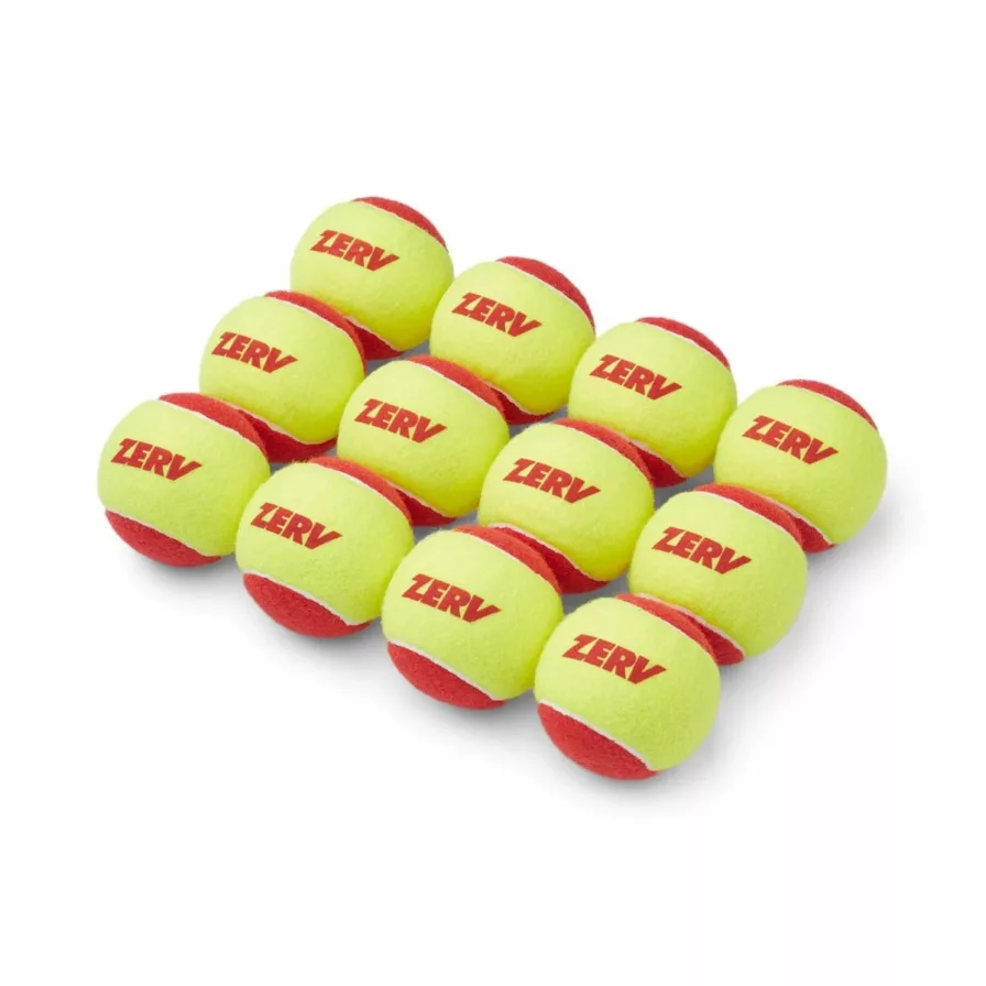 Den Røde ZERV Play & Stay tennisbold, er trykreduceret med 75 procent i forhold til en regulær tennisbold. Det lave tryk i disse bolde gør boldene ideel til børn i alderen fra 0-7 år. Det lave tryk gør boldene en del langsommere og blødere at spille med.