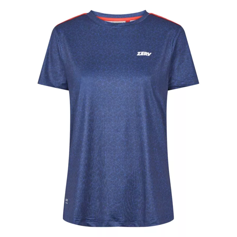 Udover at være af lækker kvalitet, så har den et lækkert design, der kombinerer et flot mørkeblåt og mønstret design med røde detaljer. Desuden er det klassiske ZERV logo printet i hvidt på brystet.